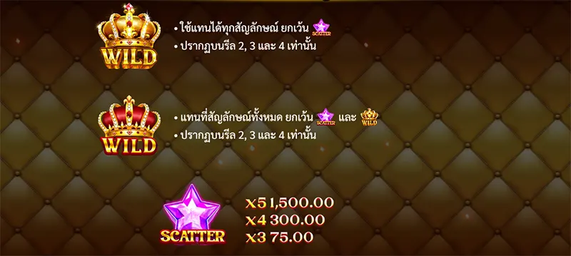 - จะจ่ายเฉพาะจำนวนเงินรางวัลสูงสุดสำหรับชุดสัญลักษณ์กระจายเท่านั้น