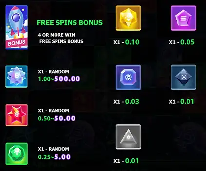 - สัญลักษณ์ Bonus = 4 อันขึ้นไปได้รับฟรีสปิน
