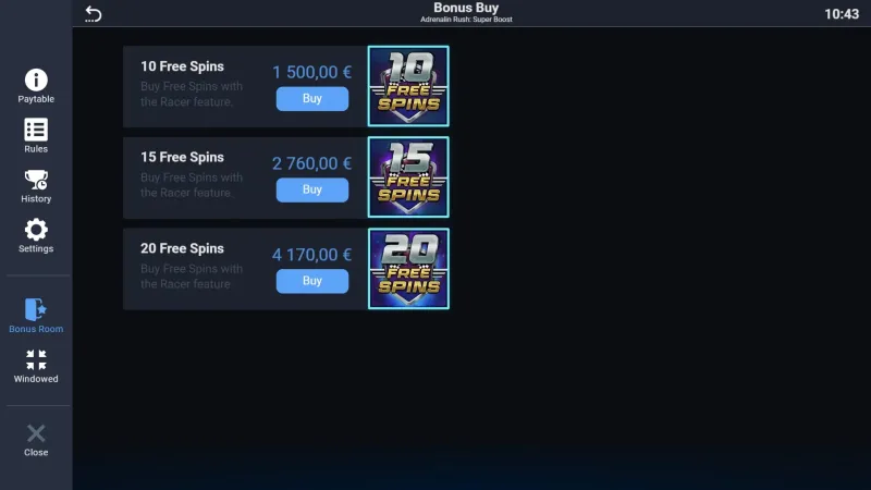 ฟีเจอร์ Bonus Buy ช่วยให้คุณสามารถซื้อและเรียกใช้ฟรีสปินได้ทันที 10, 15 หรือ 20 ครั้ง