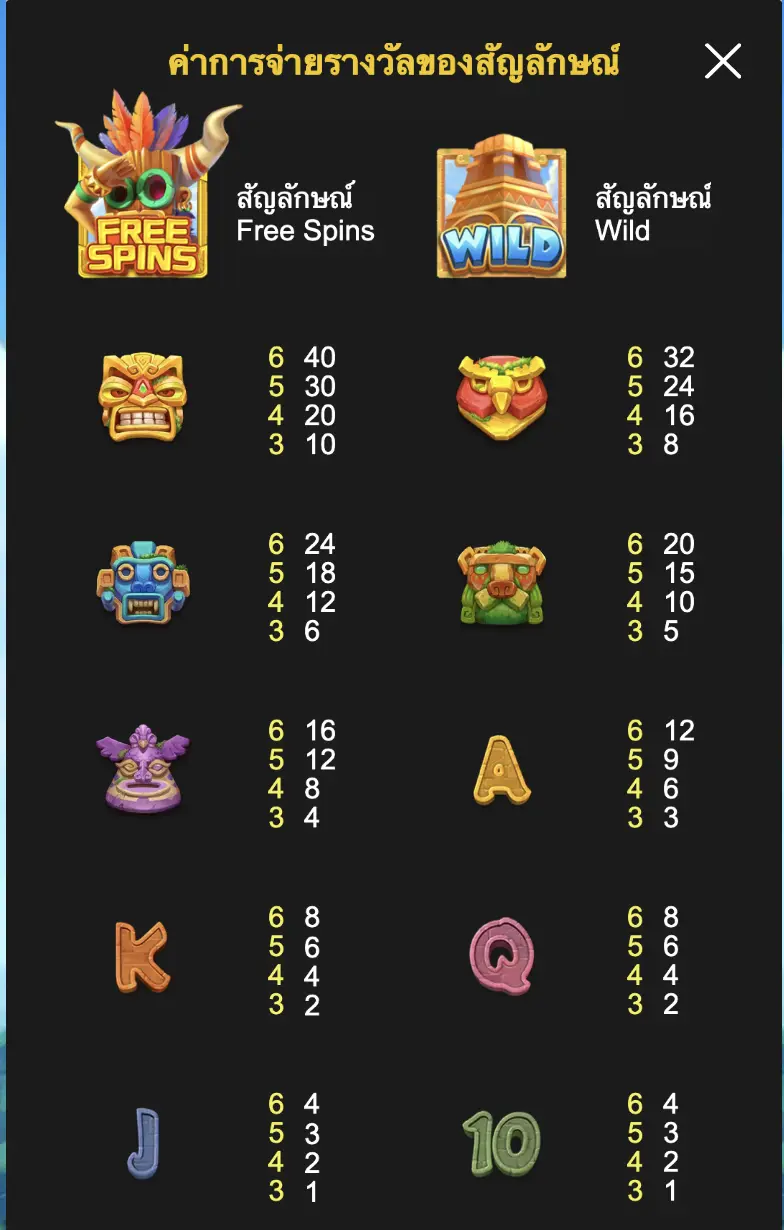 - สัญลักษณ์ Wild แทนที่สัญลักษณ์ทั้งหมด ยกเว้นสัญลักษณ์ Free Spins