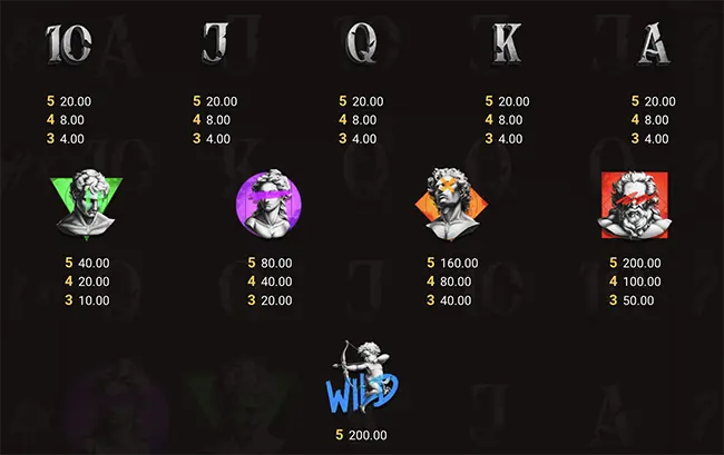 • และตัวละครเป็นรูปปั้นหินอ่อน คุณจะได้รับสัญลักษณ์ปกติเก้าแบบที่จะช่วยคุณสร้างชุดสัญลักษณ์ที่ชนะรางวัล