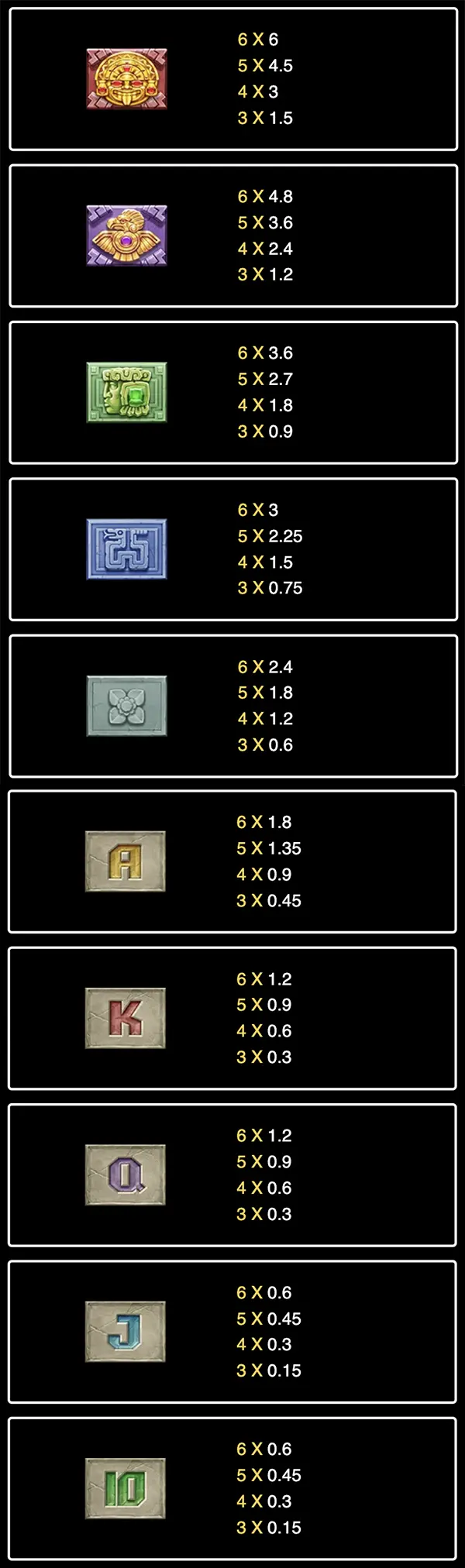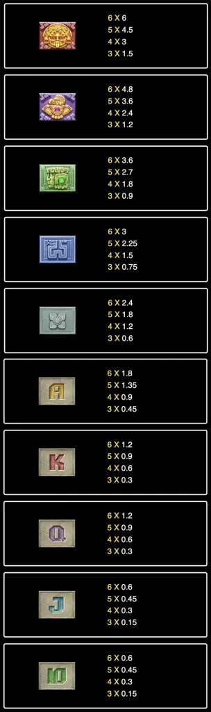 ตารางสรุปภาพรวมของเกม Aztec Priestess