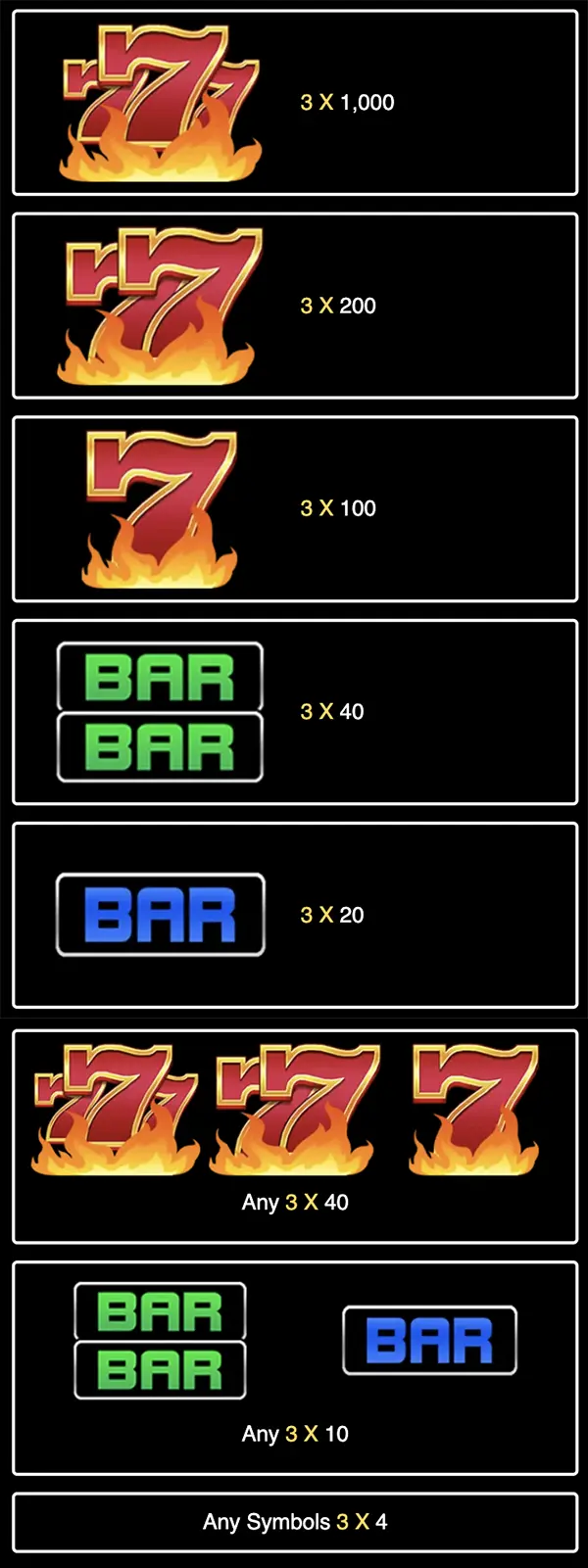 - การชนะและการจ่ายเงินจะเป็นไปตามตารางการจ่ายเงิน