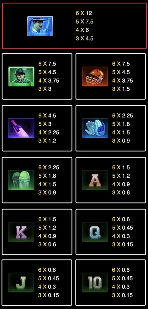 ตารางสรุปภาพรวมของเกม Cricket Sah 75