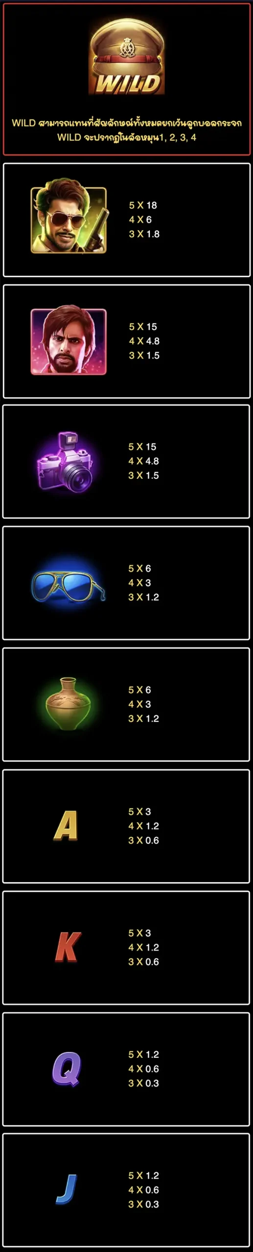 มาสัมผัสประสบการณ์เกมสล็อต “Dabanggg” ที่ผสานความตื่นเต้นของภาพยนตร์เข้ากับความเร้าใจของคาสิโนได้อย่างลงตัว! ในเกมสล็อต 3×5 รีล 25 เพย์ไลน์นี้ ผู้เล่นจะได้ดำดิ่งสู่โลกสุดโหดของซัลมาน ข่าน พร้อมเผชิญหน้ากับความท้าทายในเมืองแห่งบาป เมื่อสัญลักษณ์ปืนสามอันขึ้นไปปรากฏบนรีลหลัก คุณจะได้รับสิทธิ์เข้าสู่โหมดเกมฟรี ซึ่งจะปลดล็อกฟีเจอร์สุดเร้าใจ นั่นคือ ปืนที่ถูกล็อคเต็มหน้าจอ ในโหมดเกมฟรี ปืนจะยังคงล็อคอยู่และสะสมคะแนน ทุกครั้งที่สัญลักษณ์ X2 ปรากฏขึ้น คะแนนปืนจะเพิ่มขึ้นเป็นสองเท่าทันที! ท้ายที่สุด คะแนนจากปืนจะแปลงเป็นรางวัลสุดอลังการตามอัตราการจ่ายเงิน โดยมีแจ็คพอตสูงสุดถึง 5000 เท่า! แม้ว่ารอบการเล่นอาจจะสั้น แต่โอกาสที่จะได้รับความท้าทายสุดเร้าใจนั้นหายาก มาลองเสี่ยงโชคของคุณและสัมผัสความตื่นเต้นสองเท่าจากทั้งภาพยนตร์และคาสิโน!