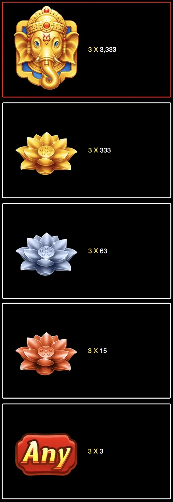 Lucky Coming สล็อต พระพิฆเนศ เทพเจ้าช้าง ที่ได้รับความนิยมมากที่สุดของอินเดีย มาพร้อมกับความมั่งคั่งและโชคลาภอย่างที่ไม่เคยมีมาก่อน! พระพิฆเนศจะแปลงร่างเป็นสัญลักษณ์ “WILD” เพื่อนำพาโชคลาภมาให้ และในขณะที่มันเพิ่มอัตราการชนะ ผู้เล่นจะได้รับตัวคูณที่แตกต่างกัน 3, 5 และ 9 ในรีลกลางเพื่อเพิ่มโบนัสอย่างมหาศาล เมื่อสัญลักษณ์ WILD เต็มกระดาน ผู้เล่นจะได้รับตัวคูณสูงสุดถึง x1,111!