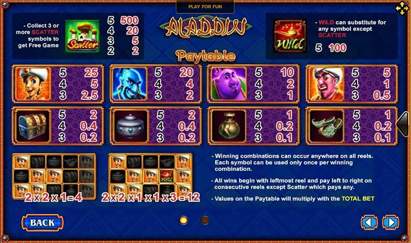 - Aladdin – สัญลักษณ์หลักของเกมและให้รางวัลสูงสุด