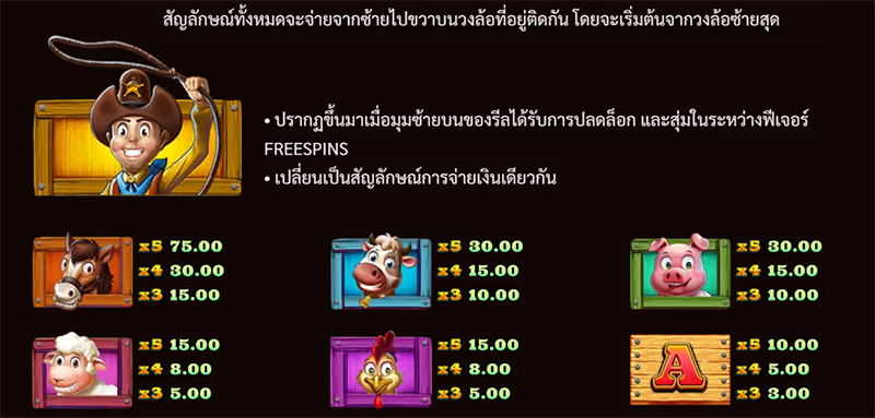Rancher’s Wealth จากค่าย JOKER GAMING เป็นเกมสล็อตธีมฟาร์มและคาวบอยที่พาผู้เล่นเข้าสู่โลกชนบทสุดอบอุ่น เต็มไปด้วยสัตว์เลี้ยงและบรรยากาศของการทำฟาร์มแบบตะวันตก ตัวเกมโดดเด่นด้วยภาพกราฟิกสไตล์การ์ตูนที่ดูเป็นมิตร สนุกสนาน และมีชีวิตชีวาความน่าสนใจของเกมนี้ไม่ได้อยู่แค่ธีมที่เข้าถึงง่าย แต่ยังรวมถึงระบบการเล่นแบบหลายวิธีชนะ (Multiway) ที่ช่วยเพิ่มโอกาสในการทำกำไรในทุกการหมุน ทำให้ผู้เล่นรู้สึกเพลิดเพลินและลุ้นได้ตลอดเวลา