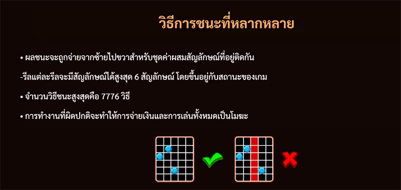 เป็นเกมสล็อตแบบ 5 รีล ที่มาพร้อมระบบ 7776 วิธีชนะ ซึ่งแตกต่างจากสล็อตทั่วไปที่ใช้ไลน์เดิมพันแบบเดิมตัวเกมใช้รูปแบบตาราง 2-4-6-4-2 ทำให้มีการเปลี่ยนแปลงรูปแบบของวงล้อและเพิ่มความหลากหลายในการเล่นฟีเจอร์เด่นของเกม ได้แก่ระบบ Cascading Reels หรือการชนะต่อเนื่อง เมื่อสัญลักษณ์หายไปแล้วจะมีตัวใหม่ตกลงมาแทนการปลดล็อกมุมของหน้าจอ ซึ่งจะเพิ่มความสามารถพิเศษ เช่น สัญลักษณ์ขยาย หรือเปลี่ยนสัญลักษณ์Free Spins และโบนัสต่าง ๆ ที่ช่วยเพิ่มโอกาสในการชนะผู้เล่นสามารถกำหนดเงินเดิมพันได้ตั้งแต่ระดับเริ่มต้นไปจนถึงระดับสูง ทำให้รองรับทั้งสายทุนน้อยและสายเดิมพันหนัก