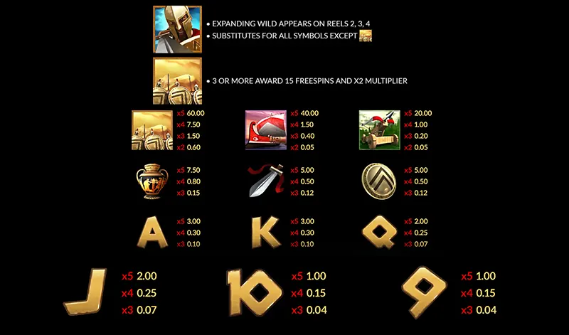 - นักรบสปาร์ตา เป็นสัญลักษณ์พรีเมียมที่ให้รางวัลสูง