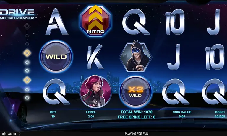 ด้วยเพย์ไลน์ที่เต็มไปด้วยความเคลื่อนไหว Drive: Multiplier Mayhem™ คือวิดีโอสล็อตที่จะทำให้คุณอะดรีนาลีนสูบฉีดตลอดทั้งเกม ผู้เล่นจะอยากสนุกอย่างต่อเนื่องเมื่อได้รับสัญลักษณ์ Multiplier Wilds และได้เผชิญหน้ากับคู่ต่อสู้ในช่วงฟรีสปิน!