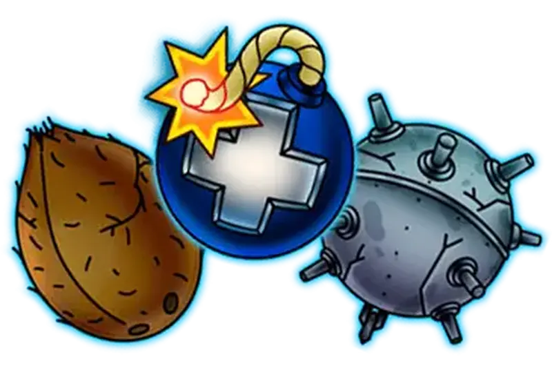 - หากไม่มีสัญลักษณ์ที่ชนะรางวัล ระเบิดจะระเบิดและลบสัญลักษณ์ตามประเภทของสัญลักษณ์นั้น สัญลักษณ์ใดก็ตามที่ถูกระเบิดลบออก จะได้รับการเพิ่มตัวคูณตำแหน่งขึ้น +1 หรือ +2 หากมีกรอบไฟอยู่ในตำแหน่งนั้น มีระเบิด 3 ประเภทที่จะระเบิดตามลำดับดังต่อไปนี้: – มะพร้าว: ลบตัวเองและเพิ่มตัวคูณตำแหน่งขึ้น 5, 10, 15, 20 หรือ 100 นอกเหนือจากการเพิ่มขึ้นตามปกติ – ระเบิดกากบาท: ลบตัวเองและสัญลักษณ์ปกติทั้งหมดในแถวและคอลัมน์เดียวกัน – ทุ่นระเบิด: ลบตัวเองและสัญลักษณ์ที่จ่ายน้อยทั้งหมดในพื้นที่รีล