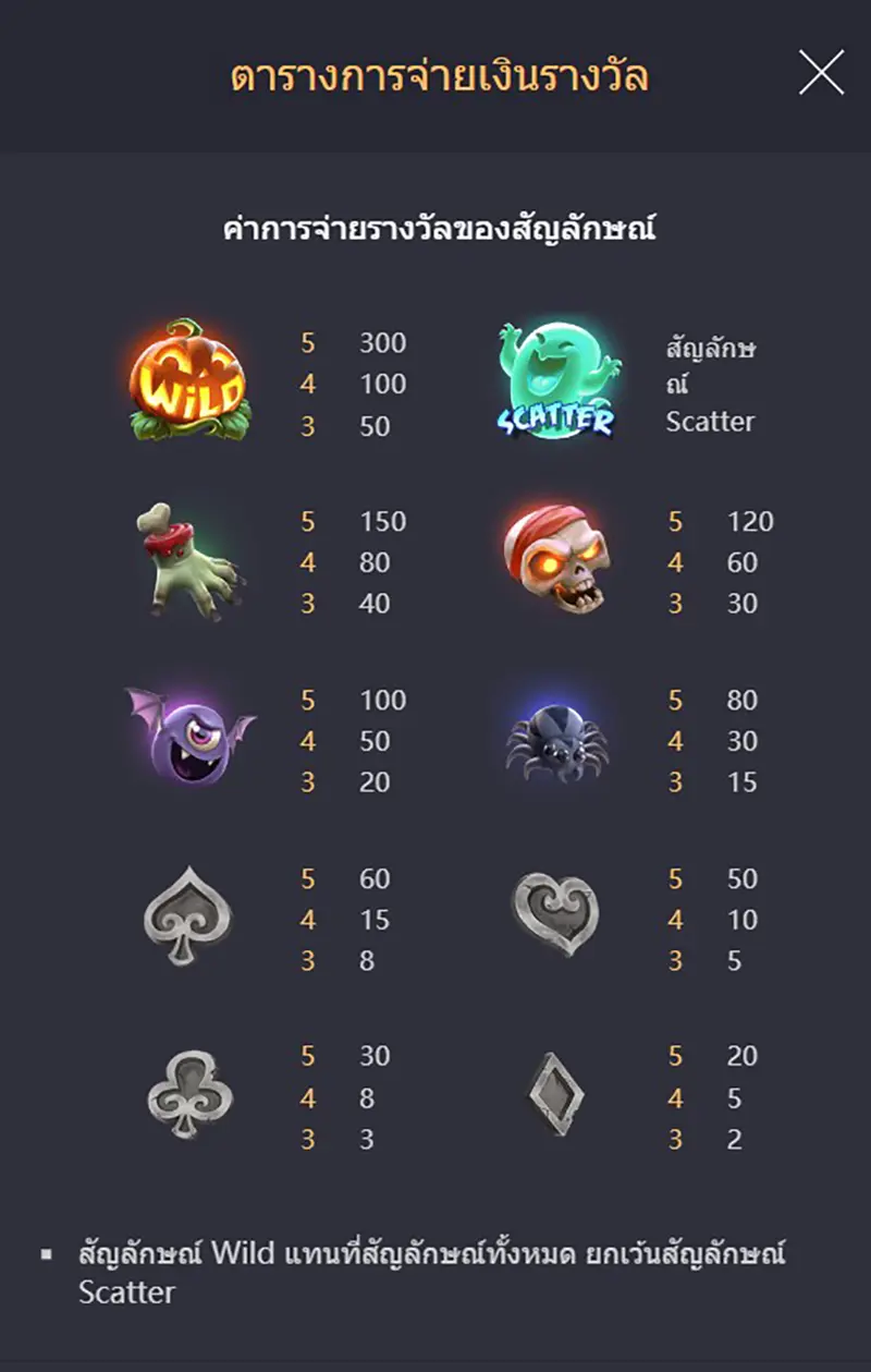 ตารางสรุปภาพรวมของเกม Mr. Hallow-Jackpot!