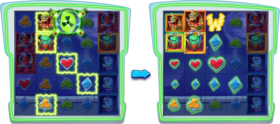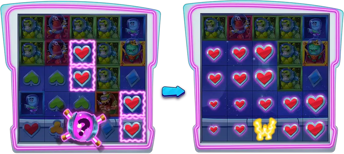 หากมีสัญลักษณ์พิเศษมากกว่า 1 แบบในรอบเดียวกัน ฟีเจอร์ Transform Into Wilds จะทำงานเป็นลำดับสุดท้าย