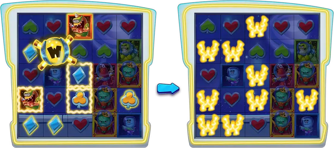 Wild และ Bonus เดิมจะไม่ถูกแทนที่