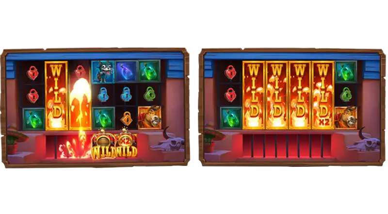 โดย Wild ที่สะสมไว้จะขยายขึ้นเป็น Wild Reel - Wild ที่สะสมหลายตัวในรีลเดียวกัน