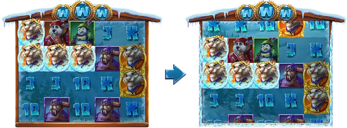- หากมี Wild 3 ตัวพร้อมกันในเกมหลัก จะเข้าสู่โบนัสหลังจากการ Cascading สิ้นสุด