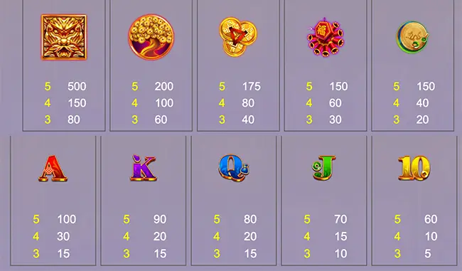- บนเพย์ไลน์ปรากฏ SYMBOL เหมือนกัน 3 หรือมากกว่าโดยเรียงจากซ้ายสุดไปขวา จะได้รับคะแนนตามอัตราจ่ายที่สอดคล้อง