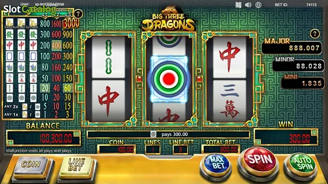 - สล็อตสไตล์เรโทรที่มีแจ็คพอตแบบก้าวหน้าเป็นส่วนผสมที่หาได้ยากและไม่เหมือนใคร ซึ่งสล็อต Big Three Dragons ก็เป็นหนึ่งในนั้น ที่มุมขวาบนของหน้าจอเกม คุณจะพบกับแจ็คพอตหลัก แจ็คพอตรอง และแจ็คพอตเล็ก ซึ่งสามารถเปิดใช้งานได้แบบสุ่ม