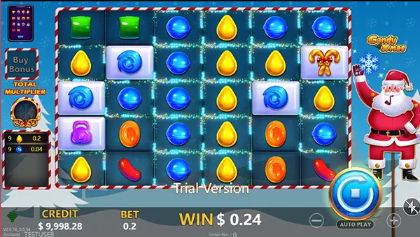 ธีมคริสต์มาสสุดน่ารักตัวเกมเต็มไปด้วยบรรยากาศเทศกาล เช่น ลูกกวาด ของขวัญ และสีสันที่สื่อถึงความสุขของช่วงคริสต์มาสฟีเจอร์โบนัสเพิ่มโอกาสรับรางวัลมีสัญลักษณ์พิเศษ เช่น Wild, Scatter และโบนัส ที่ช่วยเพิ่มโอกาสชนะและรับรางวัลมากขึ้นกราฟิกสีสันสดใส เล่นเพลินภาพในเกมออกแบบอย่างละเอียด พร้อมเอฟเฟกต์ที่ช่วยเพิ่มความตื่นเต้นในทุกการหมุนผู้เล่นเพียงกำหนดจำนวนเงินเดิมพัน จากนั้นกดหมุนวงล้อเพื่อเริ่มเกม หากสัญลักษณ์เรียงกันตามเงื่อนไขที่กำหนด จะได้รับเงินรางวัลทันทีเมื่อเข้าสู่โหมดโบนัส ผู้เล่นอาจมีโอกาสรับรางวัลเพิ่มขึ้น ทำให้ทุกการหมุนมีความลุ้นและสนุกมากยิ่งขึ้น