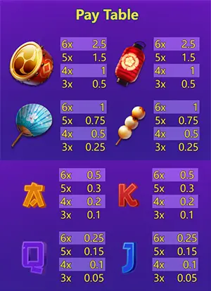 | กลองไทโกะ (Drum) | 2.5 | 1.5 | 1 | 0.5 |